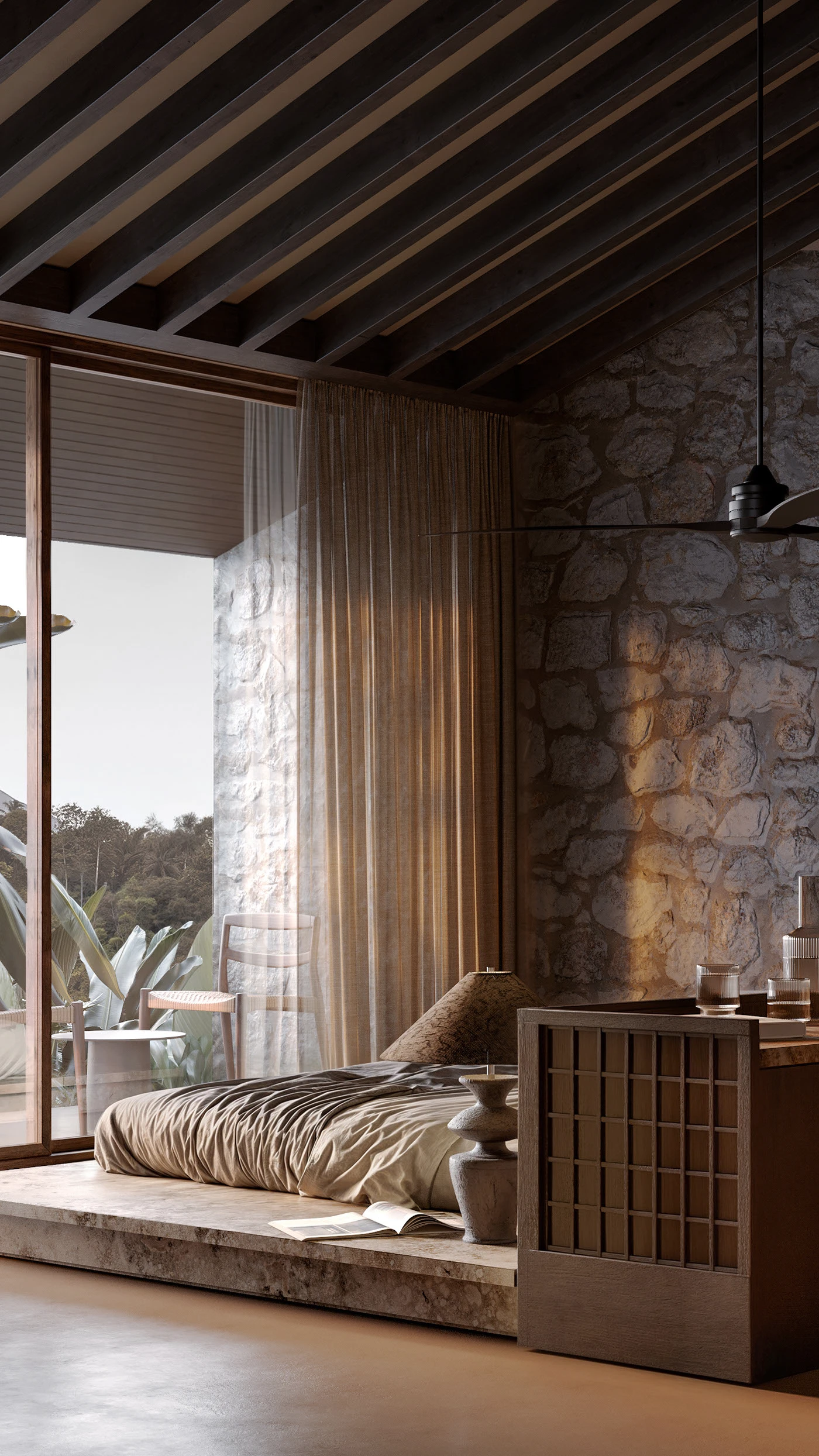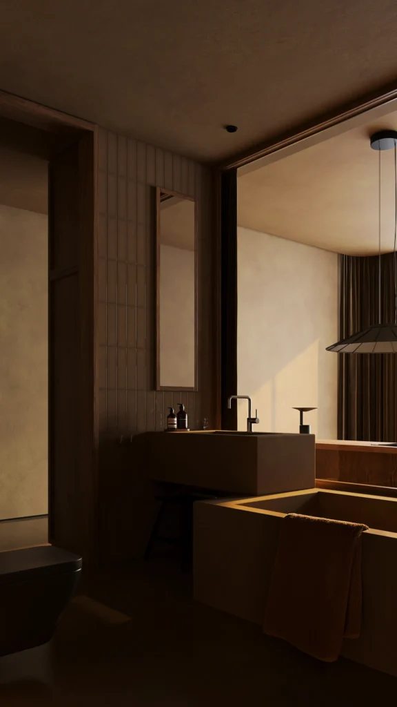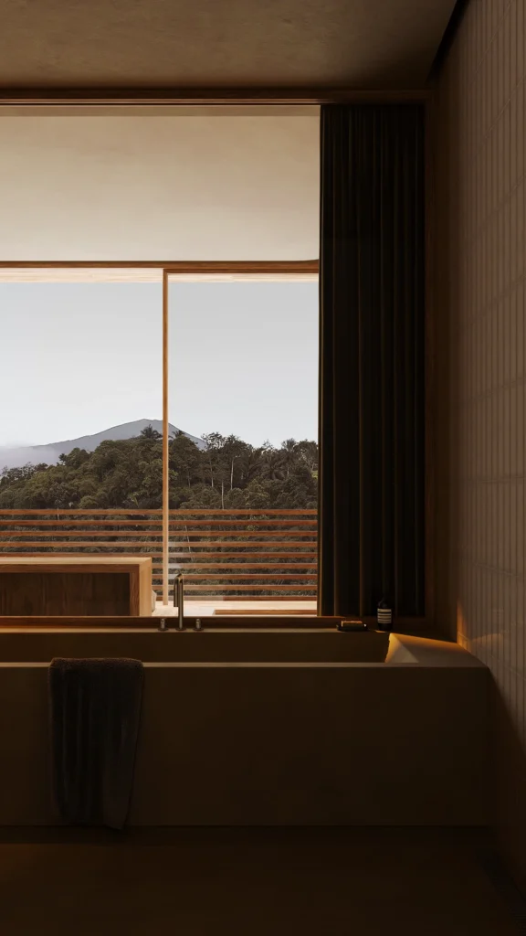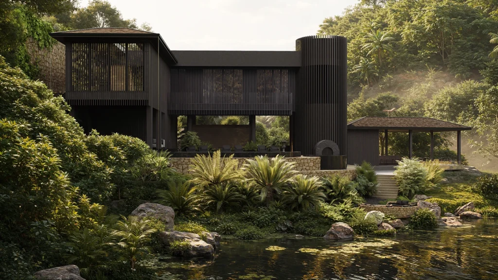At its core, the concept is rooted in harmony between architecture and nature. The design does not attempt to dominate its surroundings but instead works with them, using minimal forms, earthy tones, and organic materials to create a natural balance. This approach allows the environment to remain the focal point while the architecture enhances its beauty in a subtle and respectful way.