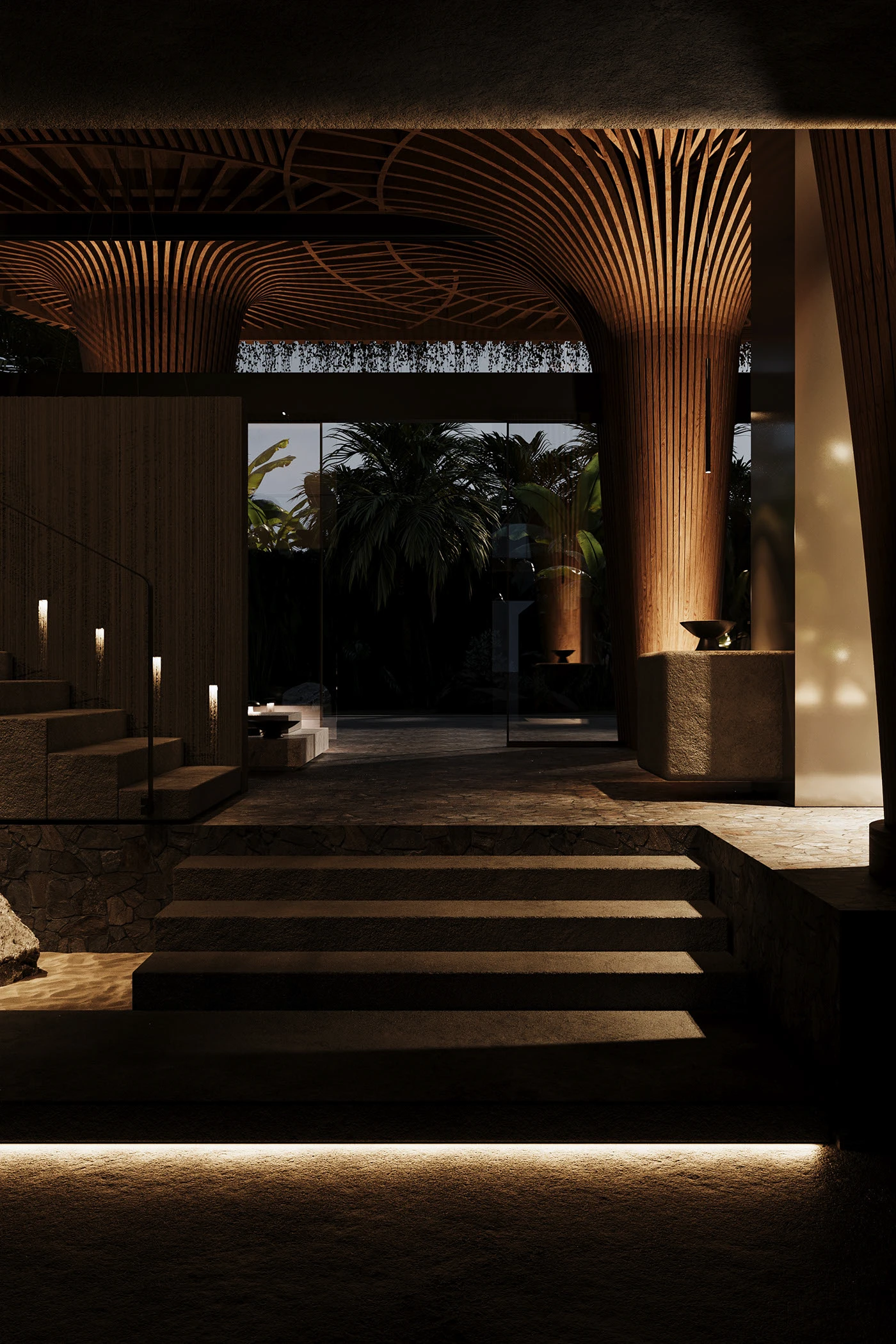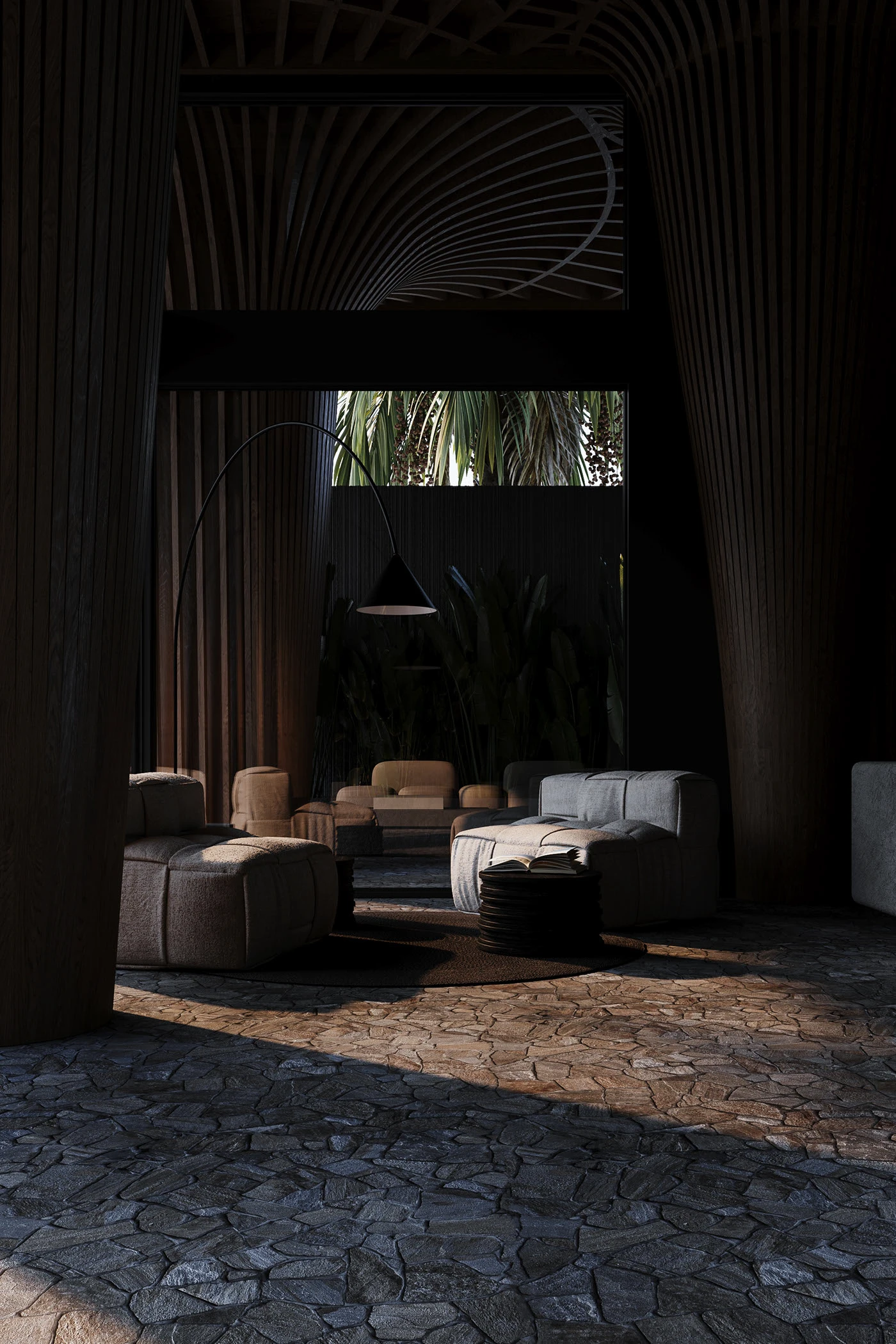 At its core, the concept follows the philosophy of “arrival as experience,” where the environment is designed to be felt as much as it is seen. The interplay of monumental simplicity and atmospheric lighting creates a dynamic yet soothing ambiance. Movement through the space becomes a journey, with each step revealing subtle shifts in light, texture, and scale that enhance the overall experience.
