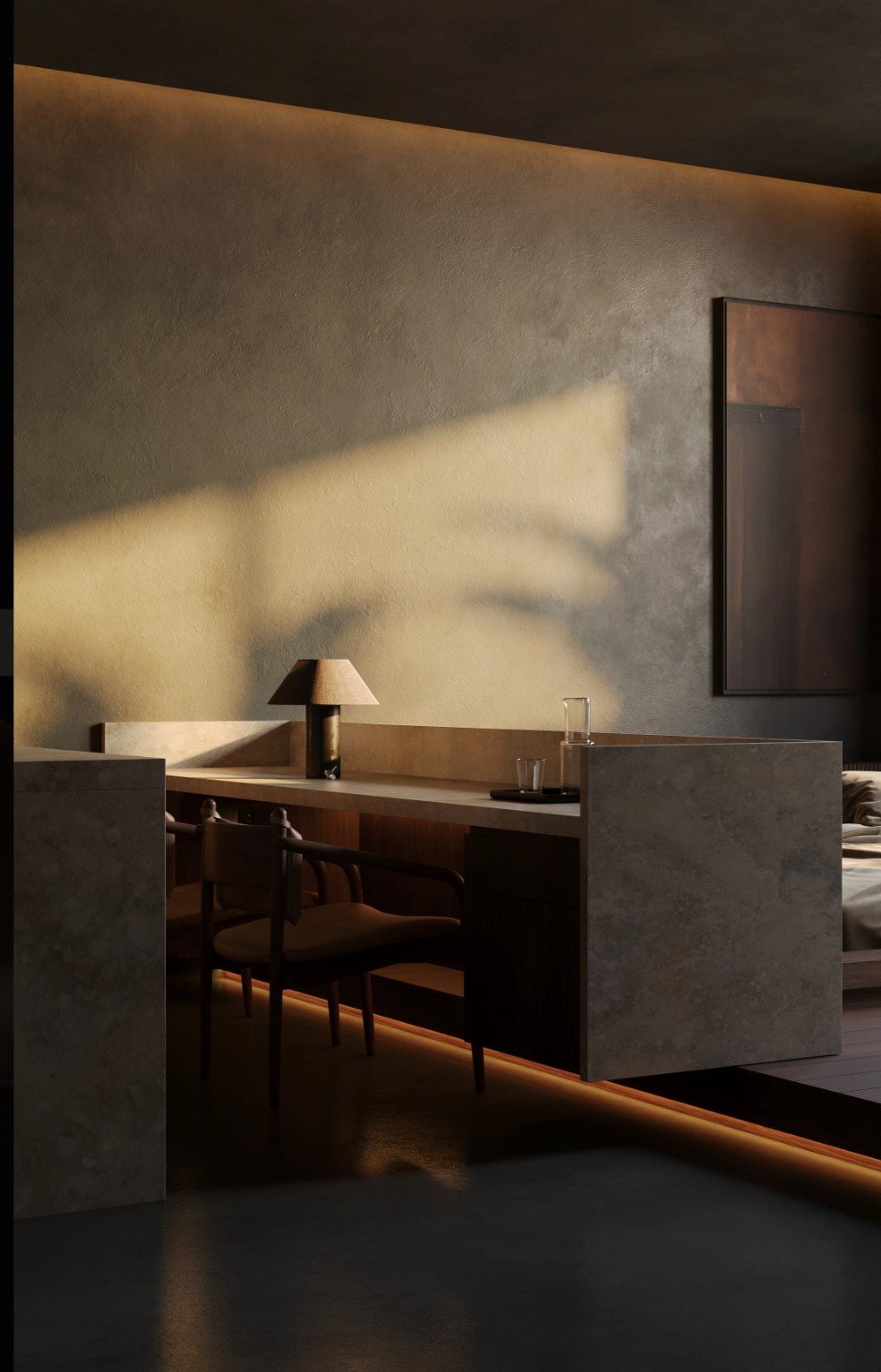 At its core, the concept follows the philosophy of “compact living, elevated,” where every design decision is intentional and purposeful. Minimalism is balanced with warmth, ensuring that the space feels both clean and comfortable. Natural materials, soft textures, and subtle lighting play a key role in shaping an environment that feels refined yet welcoming.