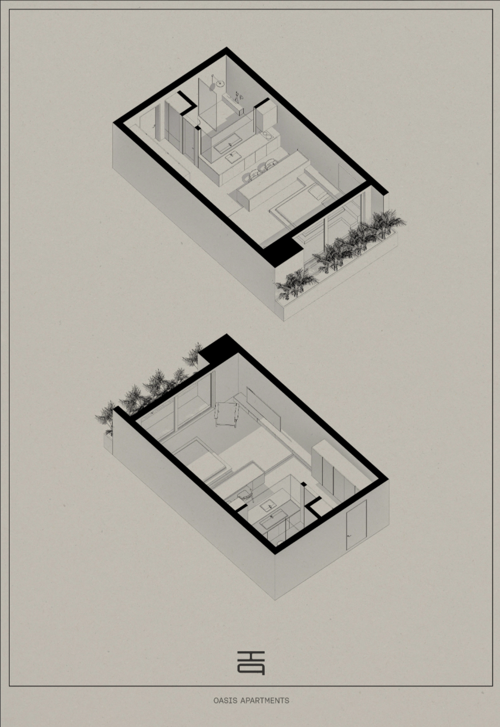 The idea of an oasis is reflected in the overall ambiance, where the combination of materials, lighting, and spatial composition creates a soothing and harmonious atmosphere. The apartment becomes a personal sanctuary within the urban landscape, proving that even compact living can offer a sense of luxury, tranquility, and completeness when approached with thoughtful design.