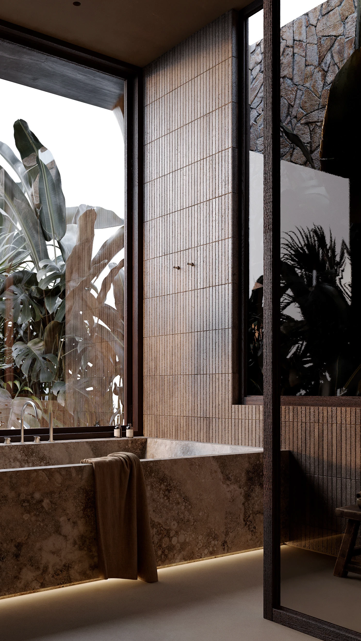 The project reflects a strong narrative in which water, stone, and greenery come together to create an immersive and transformative living environment. Instead of imposing itself on the landscape, the architecture blends seamlessly into it, dissolving the boundaries between built form and nature. This integration allows the surroundings to remain dominant while the design enhances the overall experience of the space.